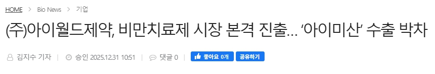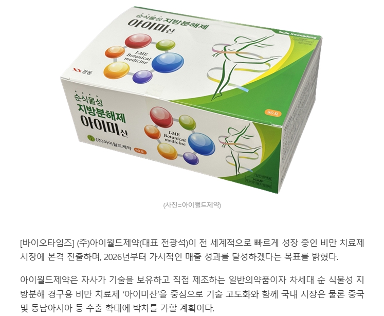 [¹ÙÀÌ¿ÀŸÀÓÁî](ÁÖ)¾ÆÀÌ¿ùµåÁ¦¾à, ºñ¸¸Ä¡·áÁ¦ ½ÃÀå º»°Ý ÁøÃ⡦ ¡®¾ÆÀ̹̻ꡯ ¼öÃâ ¹ÚÂ÷